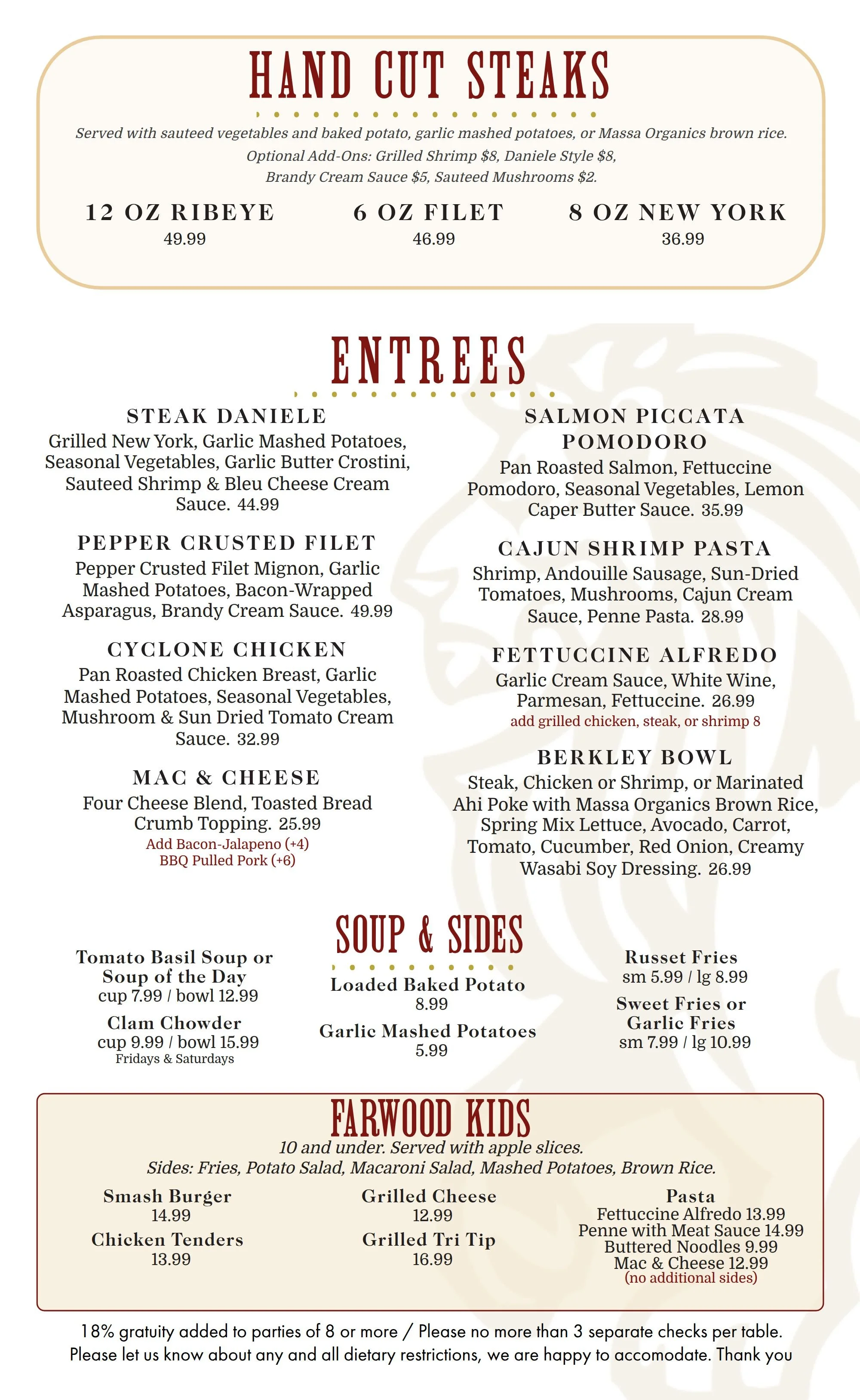 A selection of special Seasonal Dinner Menu items are also available daily. For more information call us at (530)865-9900, or visit the link below.